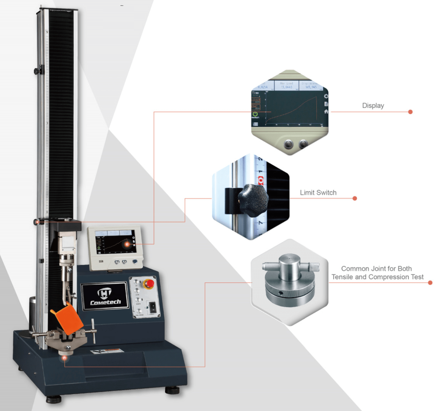 Máy kiểm tra cơ lí vật liệu có thể phân tích các kết quả thử nghiệm bao gồm độ kéo dài, độ căng, độ bền phá vỡ, và giá trị trung bình.