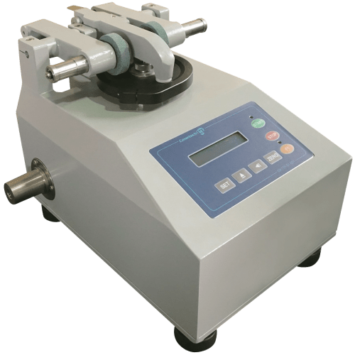 Máy kiểm tra mài mòn Taber được thiết kế với 1 đĩa kẹp mẫu, vòi hút chân không và 2 bánh mài mòn có thể thay đổi trọng lượng. Sau khi thực hiện quy trình kiểm tra, đo chênh lệch trọng lượng mẫu trước và sau khi kiểm tra để đánh giá khả năng kháng mài mòn.